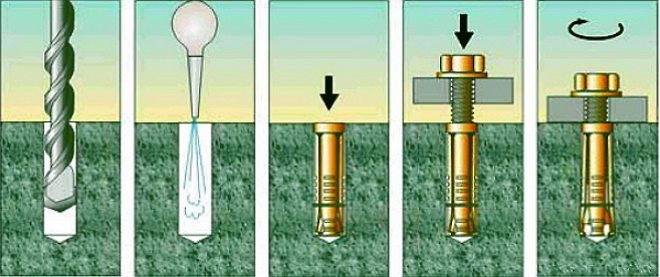 Анкерные болты монтируются в несколько этапов.