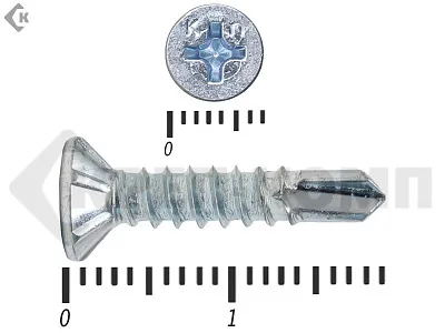 К данному виду крепежа предъявляются особые требования, так как он применяется для крепления в сложном материале, таком как металл. Поэтому при производстве саморезов по металлу их наделяют специфической резьбой с маленьким расстоянием между витками, что конечно же помогает им врезаться в такой плотный материал как металл. Эта подгруппа является самой широкой во всей группе, так как она еще дополнительно делится на два вида: - Со сверлом