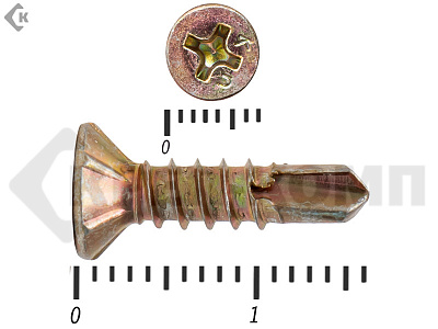 К данному виду крепежа предъявляются особые требования, так как он применяется для крепления в сложном материале, таком как металл. Поэтому при производстве саморезов по металлу их наделяют специфической резьбой с маленьким расстоянием между витками, что конечно же помогает им врезаться в такой плотный материал как металл. Эта подгруппа является самой широкой во всей группе, так как она еще дополнительно делится на два вида: - Со сверлом