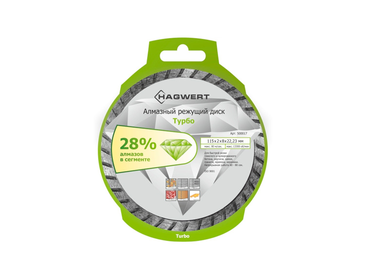 Диск отрезной алмазный Турбо 150х2,2х8х22,23 мм по камню "Hagwert" (1 шт)